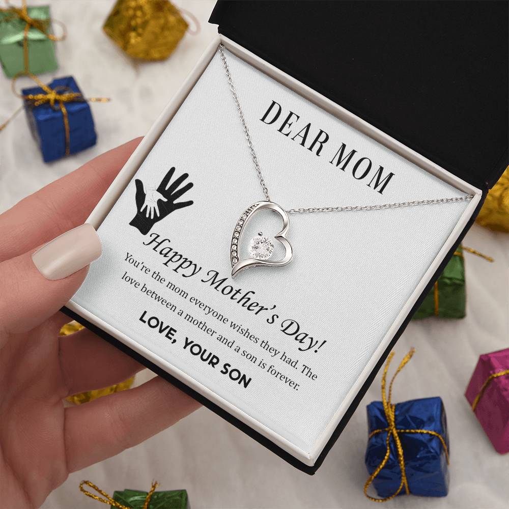 Beautiful Mother's Day gift for Mom from Son "DEAR MOM You're the mom everyone wishes they had" Forever Love Necklace